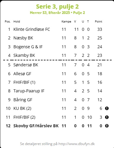 2020 efterår Blev ikke færdigspillet pga. corona/covid19, men slutstillingen blev således